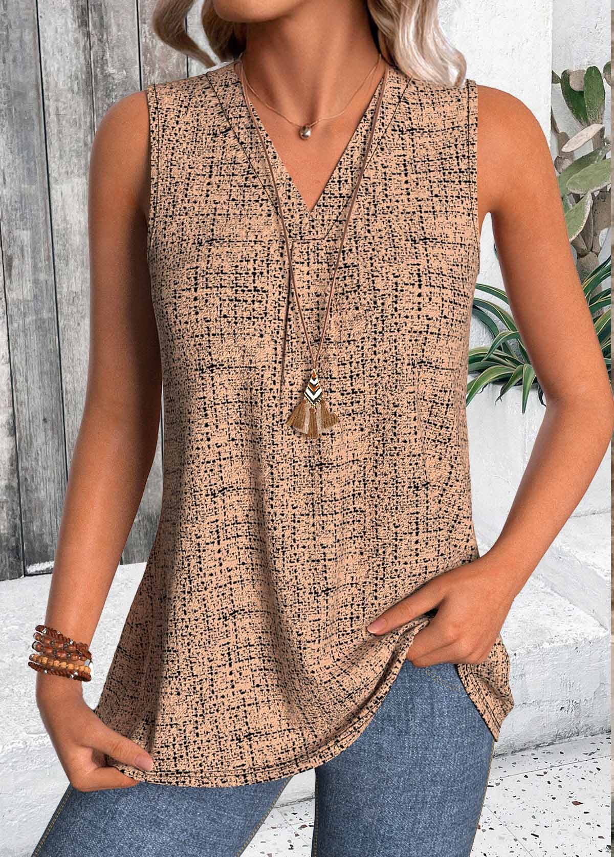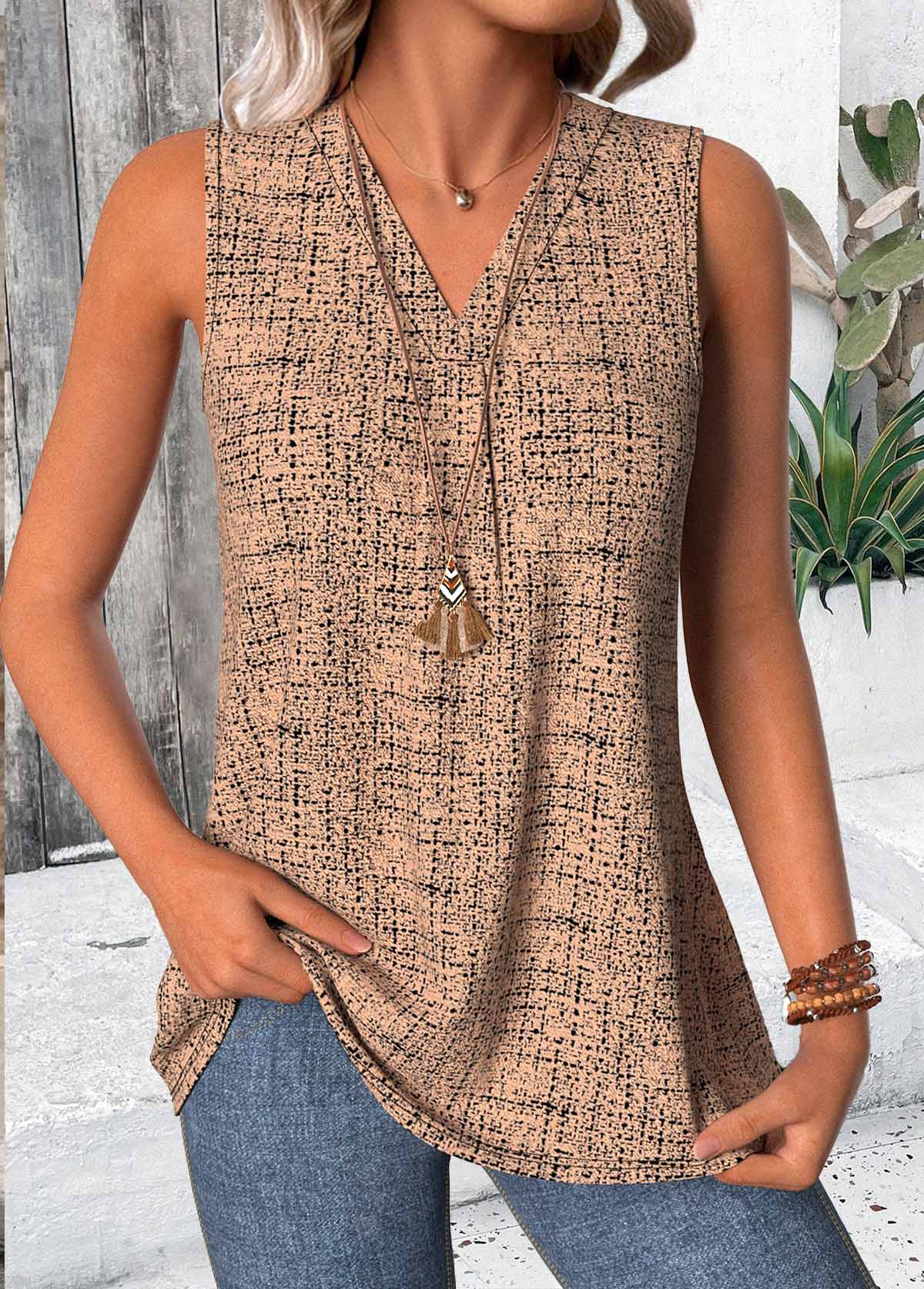 Multi Color Tummy Coverage Geometric Print Sleeveless Tank Top