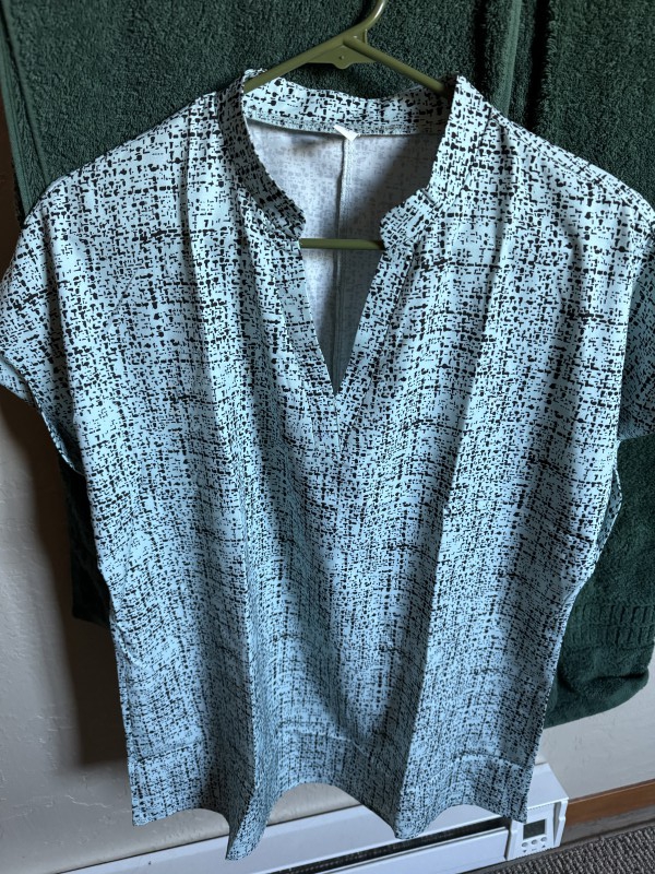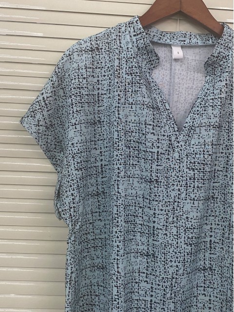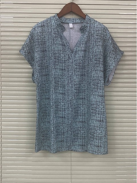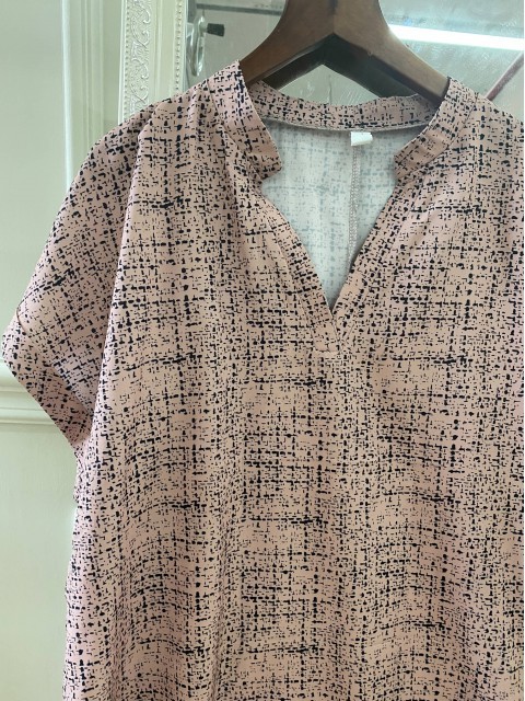 Navy Geometric Print Short Sleeve Split Neck Blouse