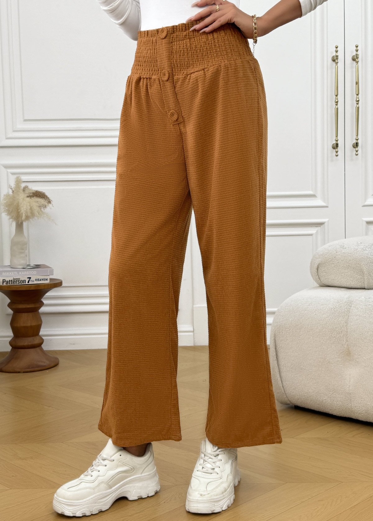 MODLILY DESIGN Light Coffee Wide Leg Elastic Waist High Waisted Pants