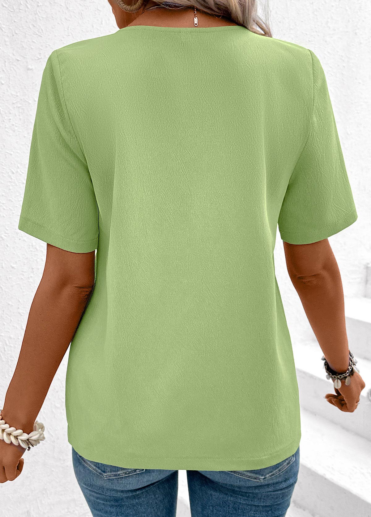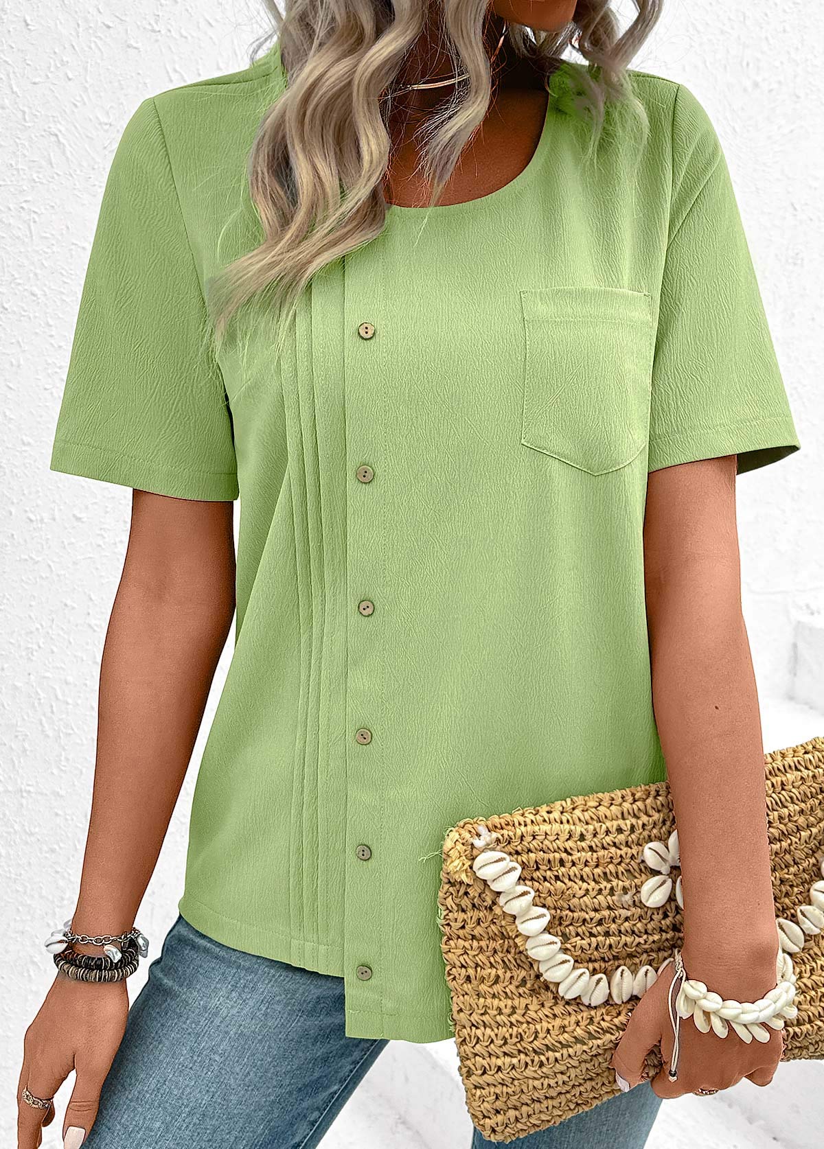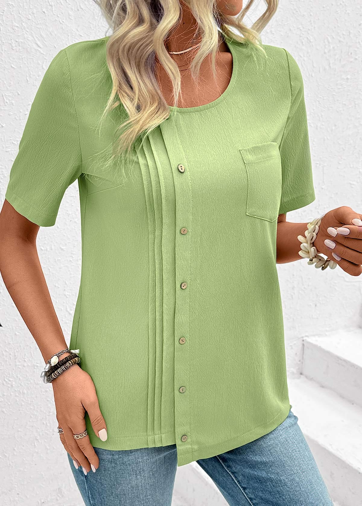 women's clothes / Tops / Blouses  /  Light Green Button Short Sleeve Round Neck Blouse