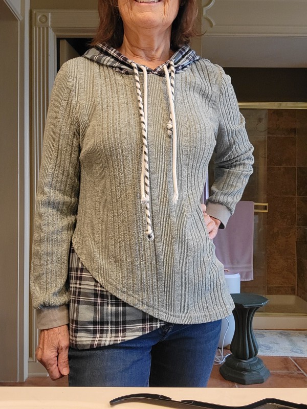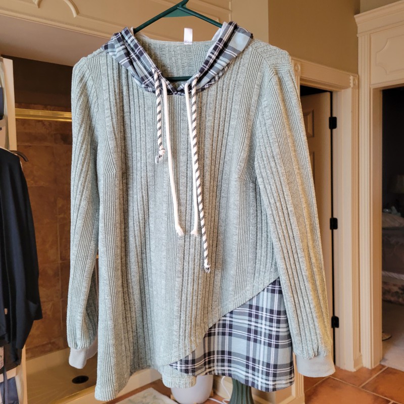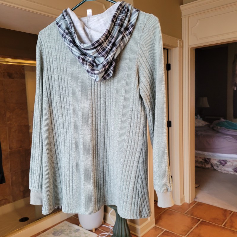 Sage Green Tummy Coverage Plaid Long Sleeve Hoodie