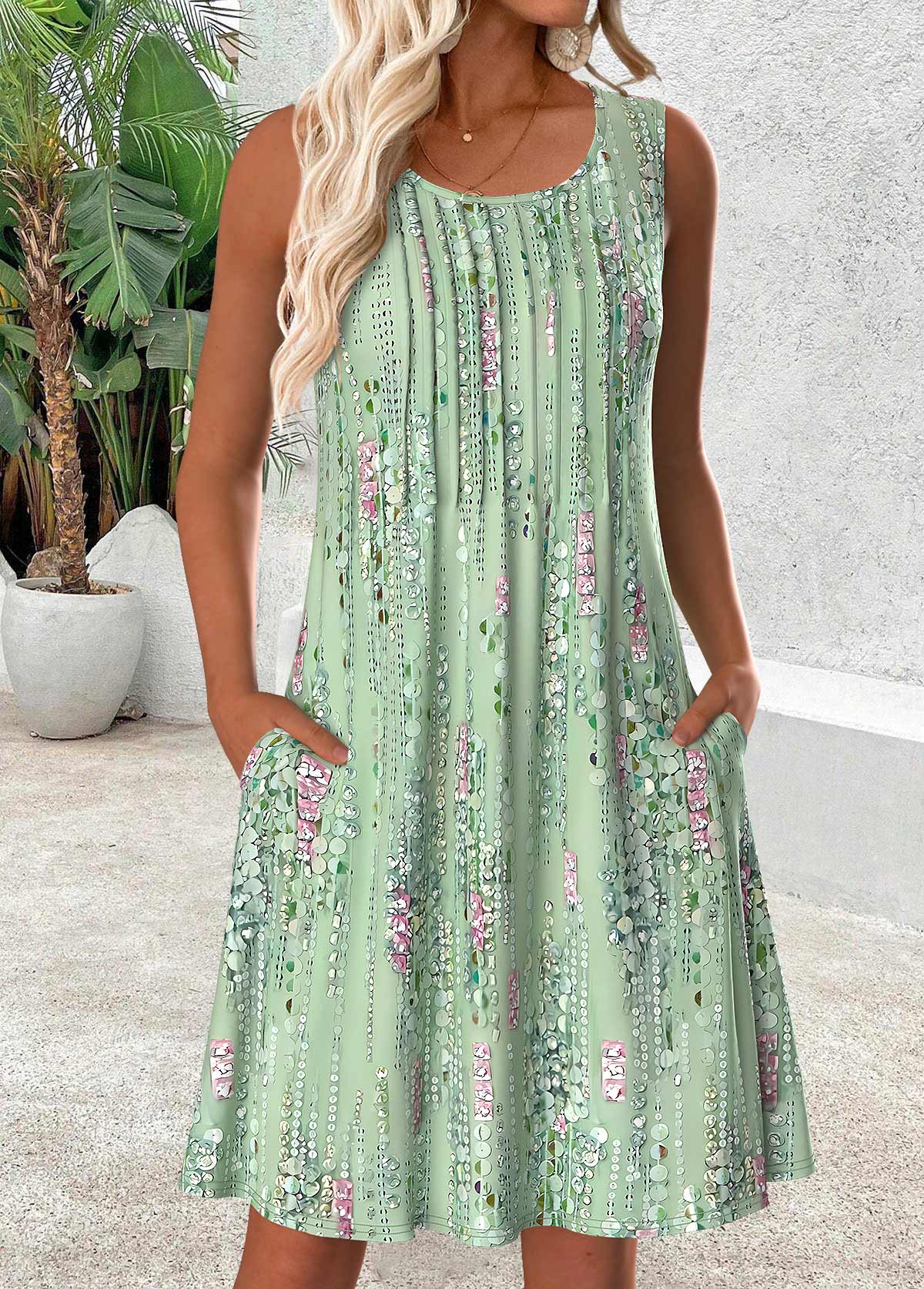 White Tummy Coverage Leaf Print Short Sleeveless Dress