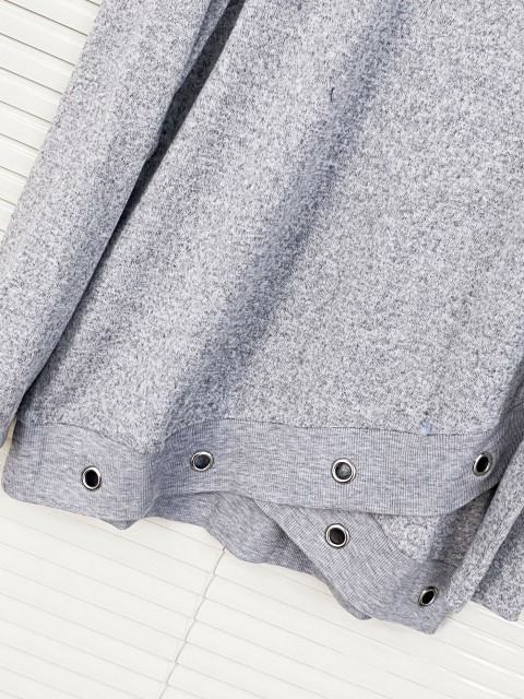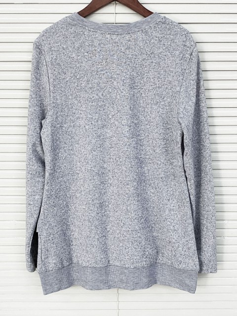 Gray Brown Tummy Coverage Long Sleeve Split Neck Sweatshirt