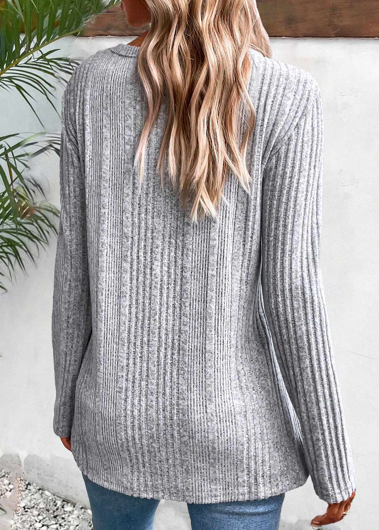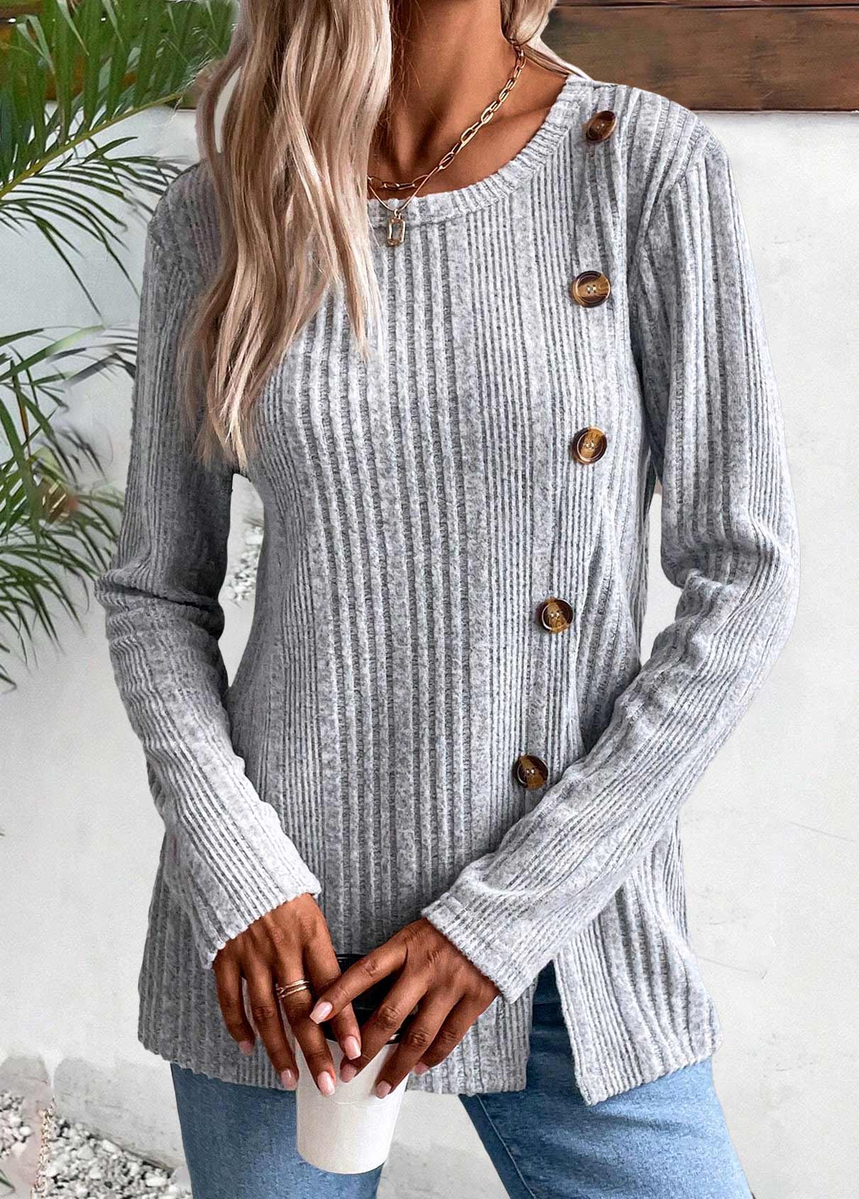 women's clothes / Tops / Tees&T-shirts  /  Light Grey Marl Button Long Sleeve T Shirt