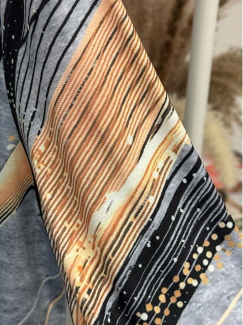 Light Camel Tummy Coverage Tribal Print T Shirt