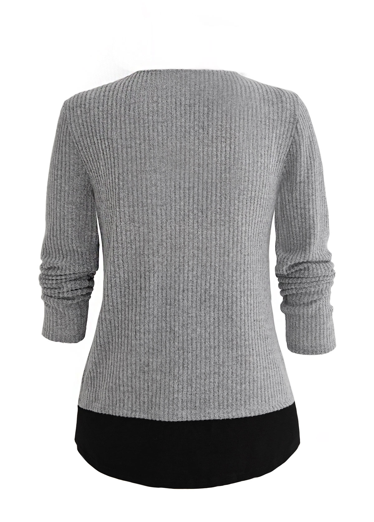 Light Grey Marl Long Sleeve Fake Two Piece Twinset