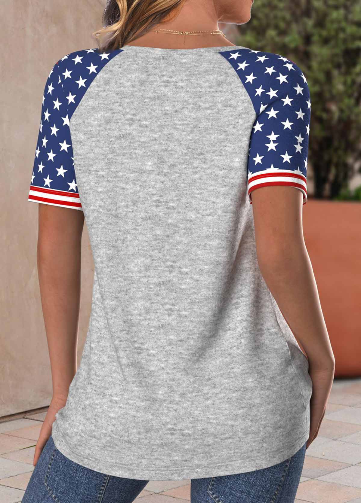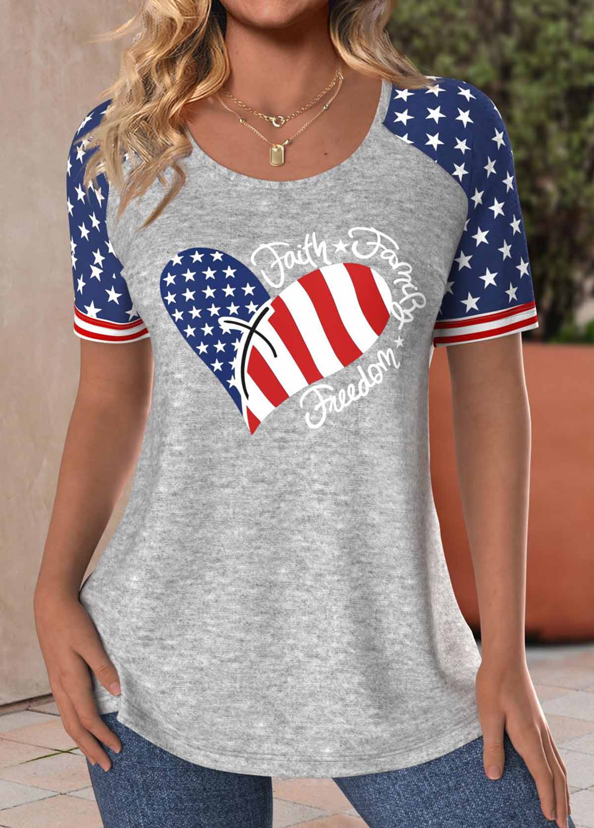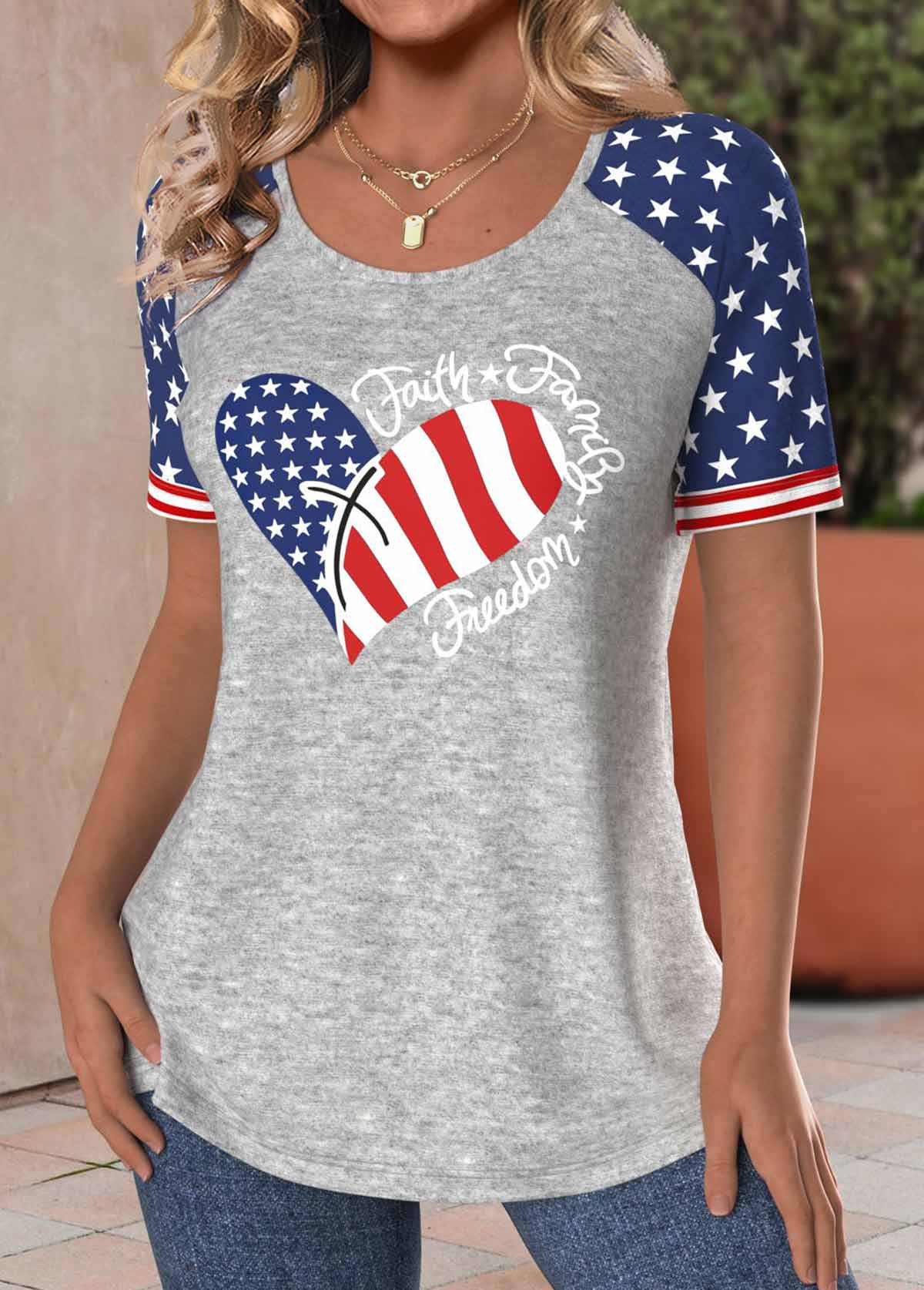 women's clothes / Tops / Tees&T-shirts  /  Light Grey Marl Patchwork Flag Print T Shirt