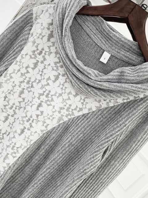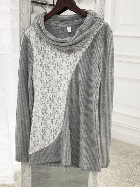 Gray Brown Tummy Coverage Long Sleeve Split Neck Sweatshirt
