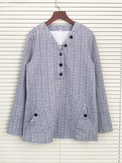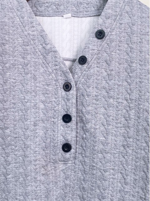 Gray Brown Tummy Coverage Long Sleeve Split Neck Sweatshirt