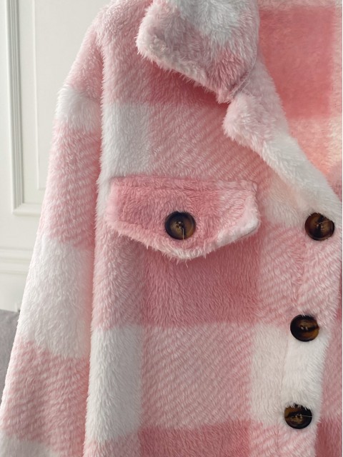 Black Tummy Coverage Plaid Long Sleeve Coat