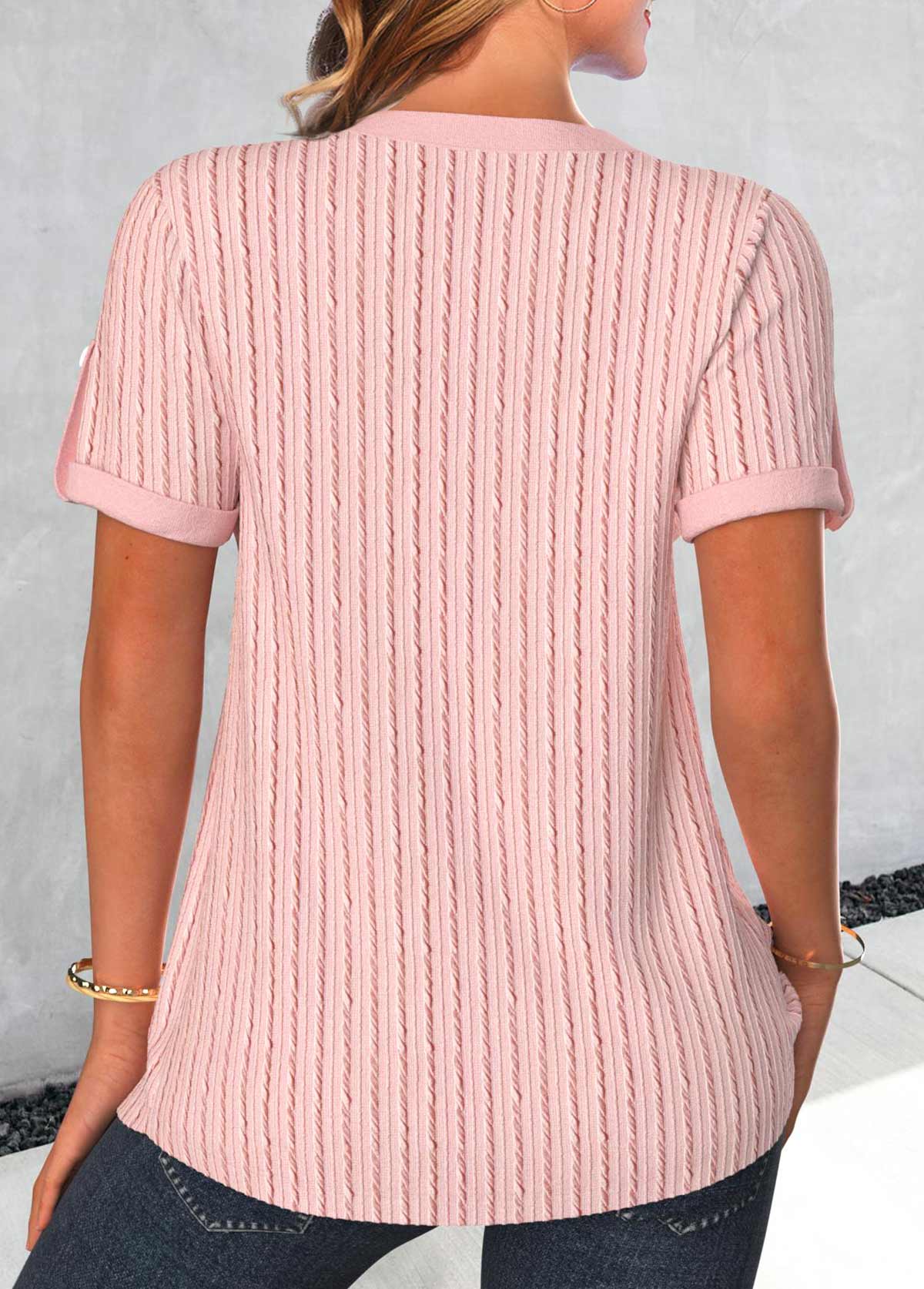 Pink Pocket Striped Short Sleeve Shirt