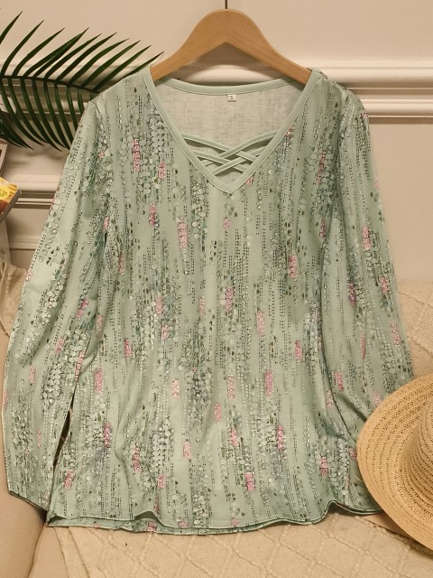 Beige Tummy Coverage Floral Print Long Sleeve T Shirt