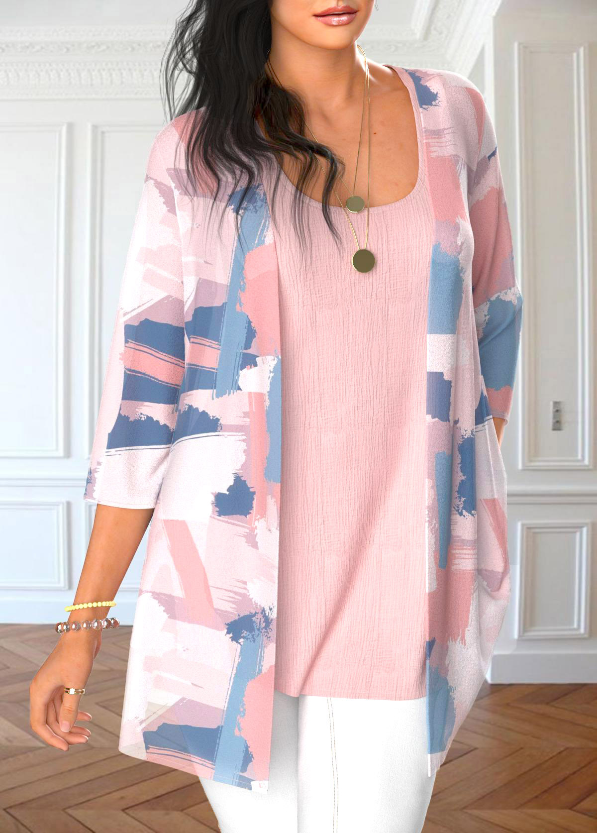 women's clothes / Tops / Two Piece Twinset  /  Light Pink Graffiti Print Cardigan and Tank Top