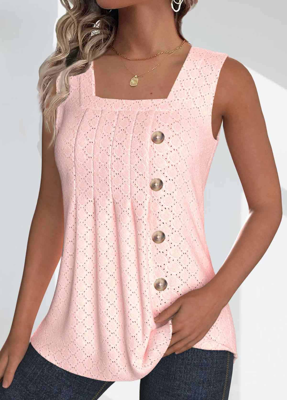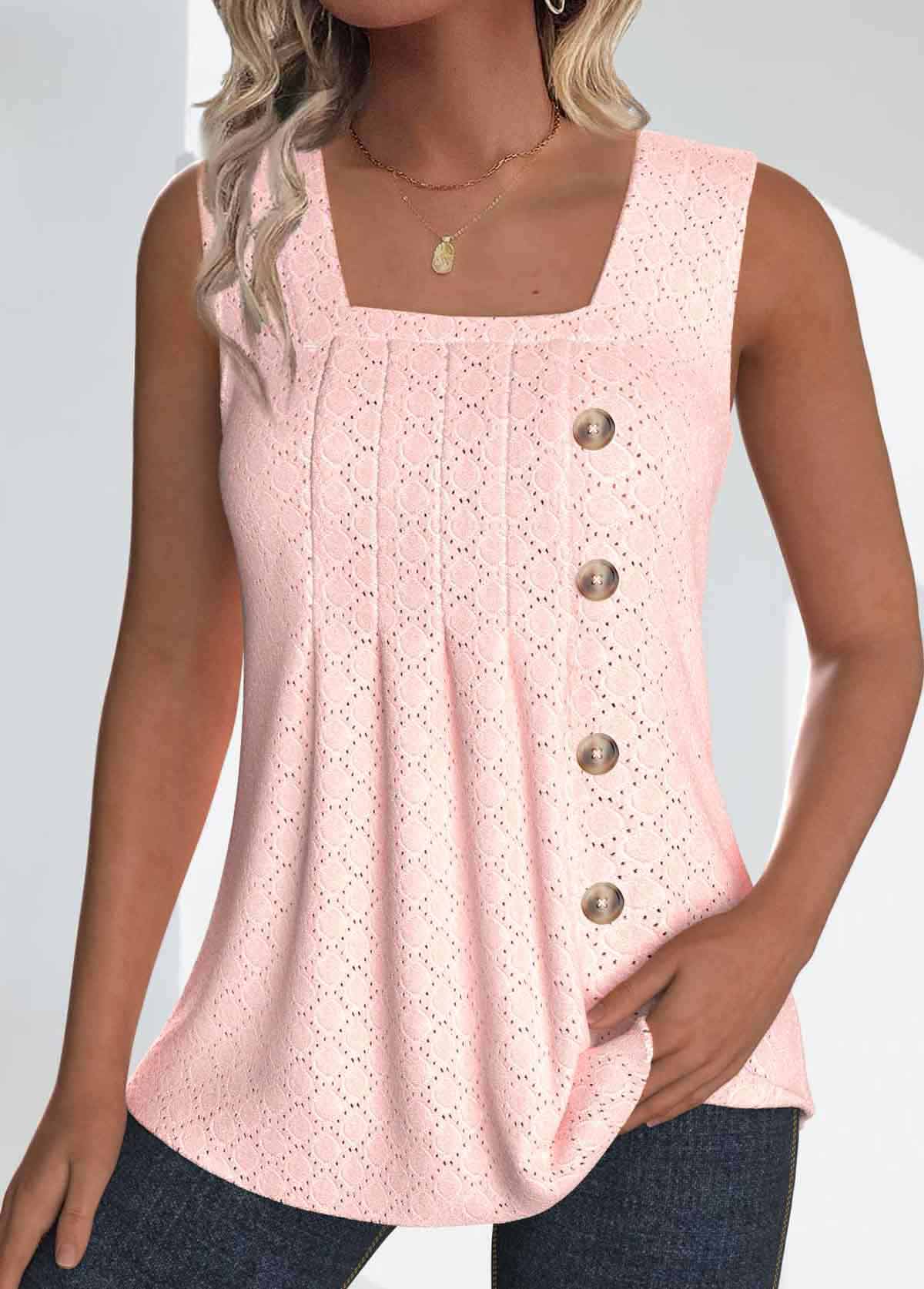 Light Pink Jacquard Sleeveless Square Neck Tank Top