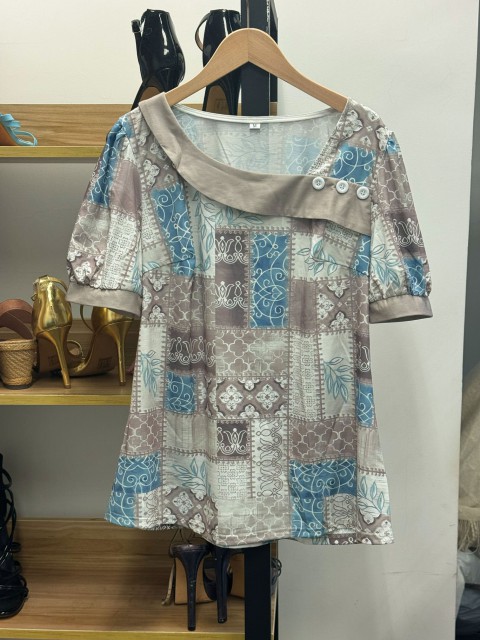 Light Camel Tummy Coverage Tribal Print T Shirt