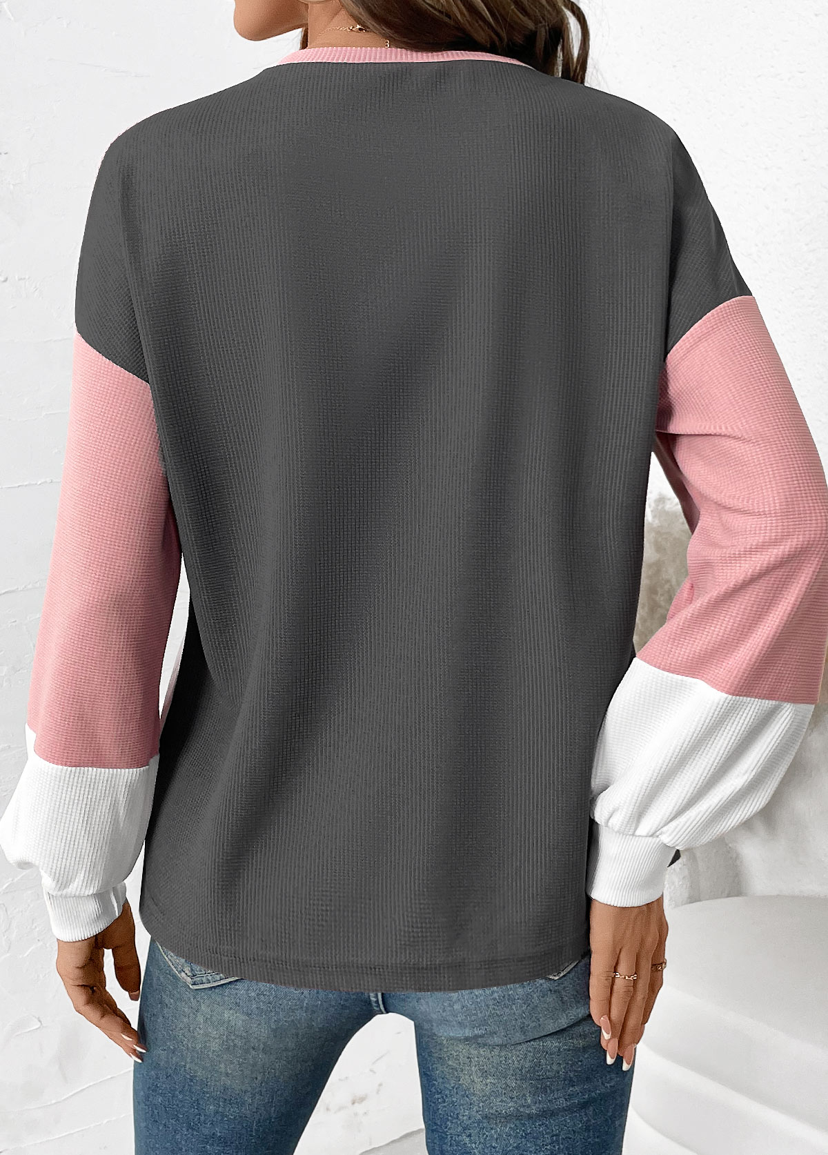 White Long Sleeve Round Neck Sweatshirt