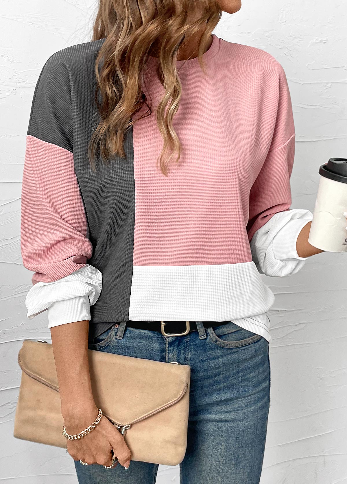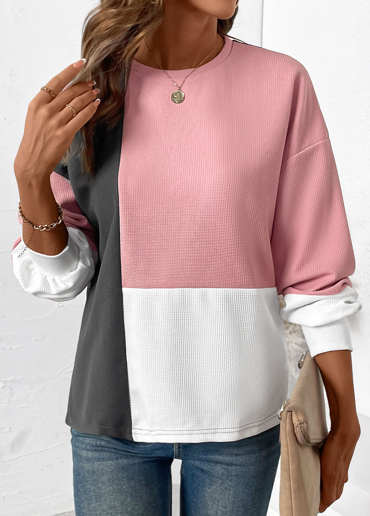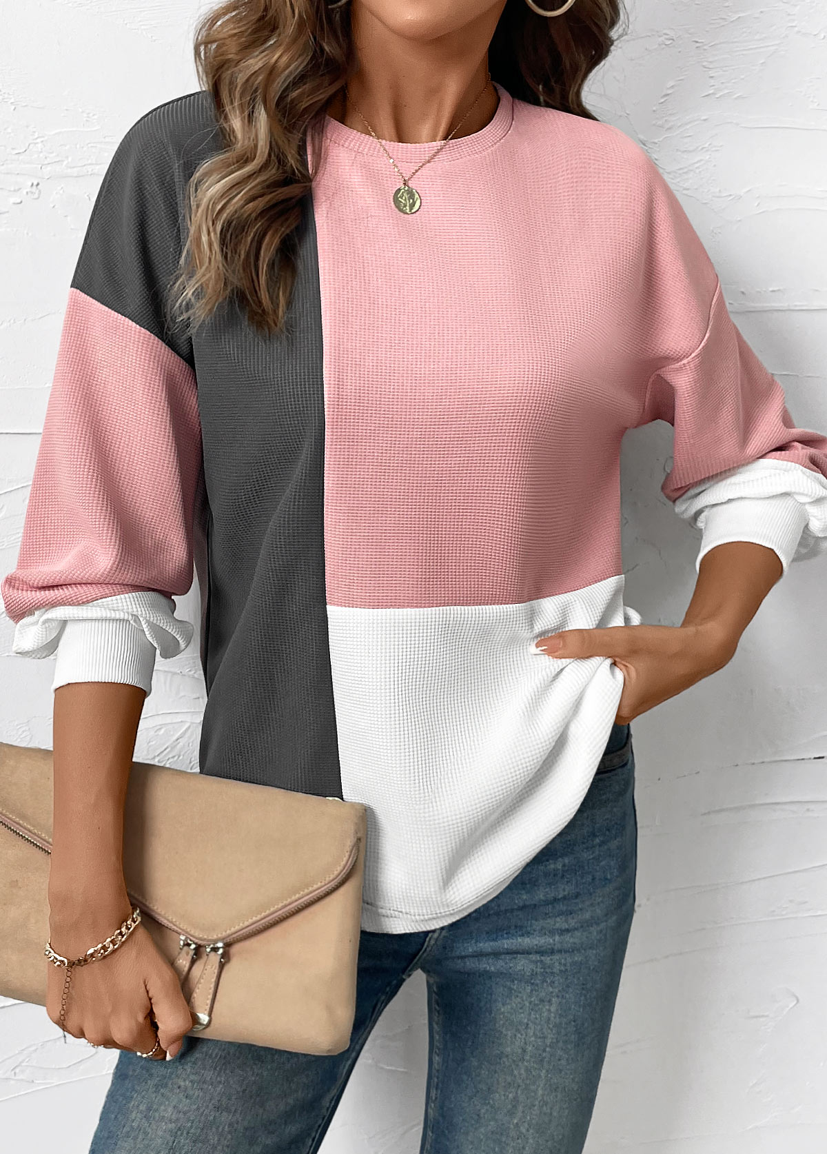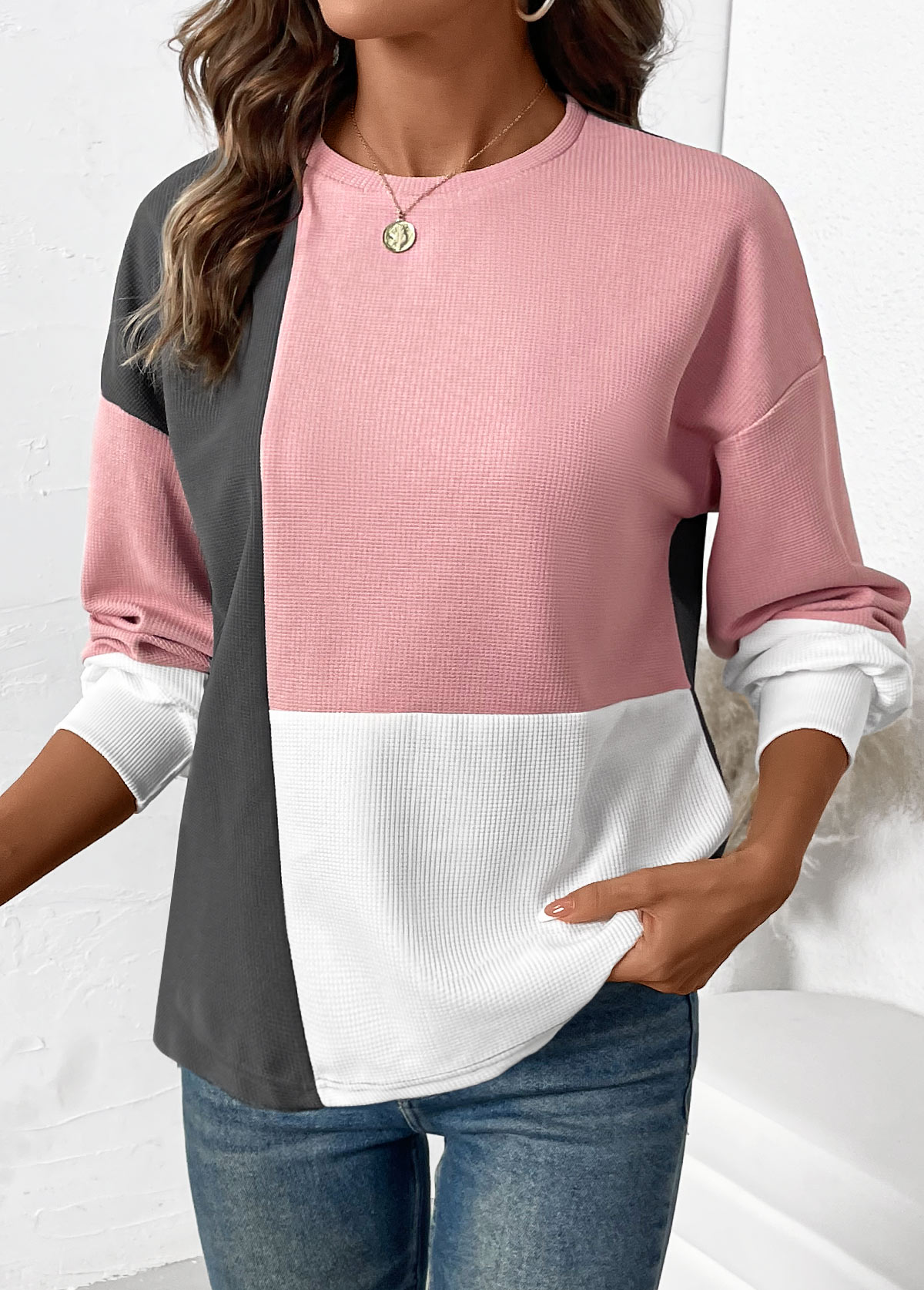 Multi Color Tummy Coverage Long Sleeve Round Neck Sweatshirt