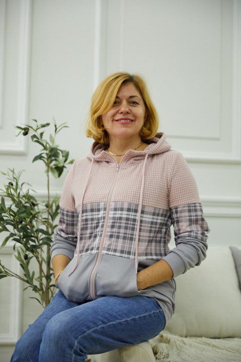 Light Pink Tummy Coverage Plaid Long Sleeve Hoodie