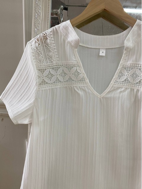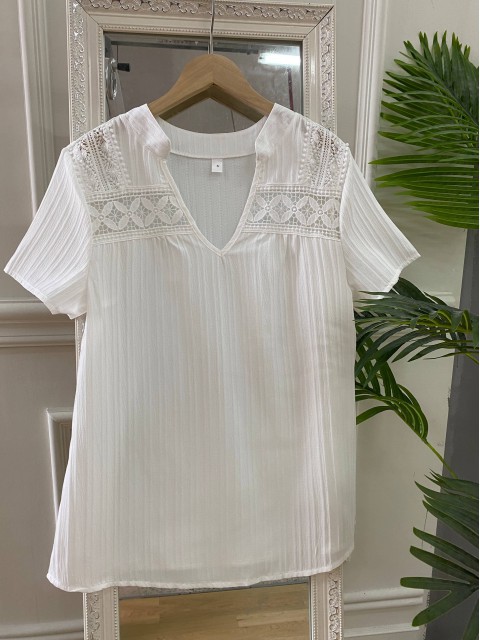 Home  /  Tops  /  Blouses  /  Light Pink Patchwork Short Sleeve V Neck Blouse