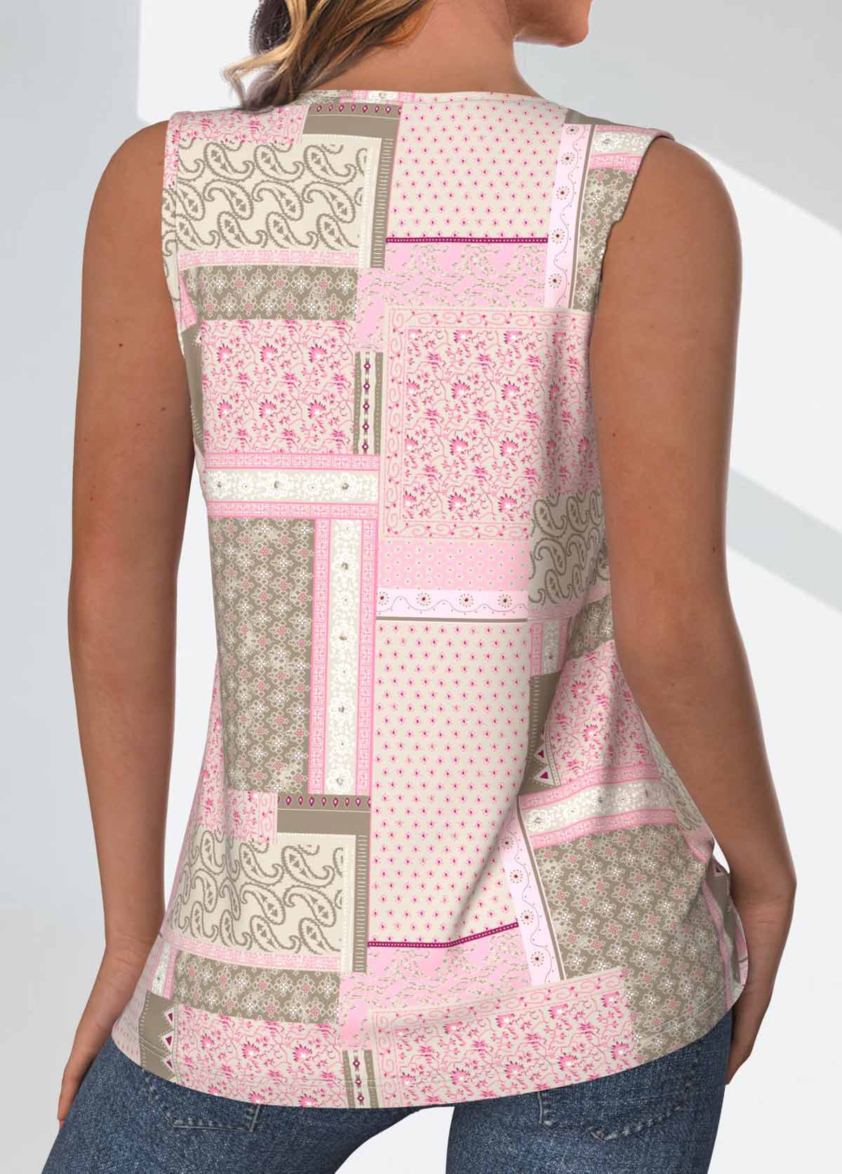 Light Pink Tuck Stitch Patchwork Sleeveless Tank Top
