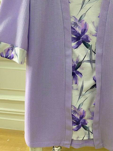 Purple Tummy Coverage 3/4 Sleeve Cardigan and Tank Top