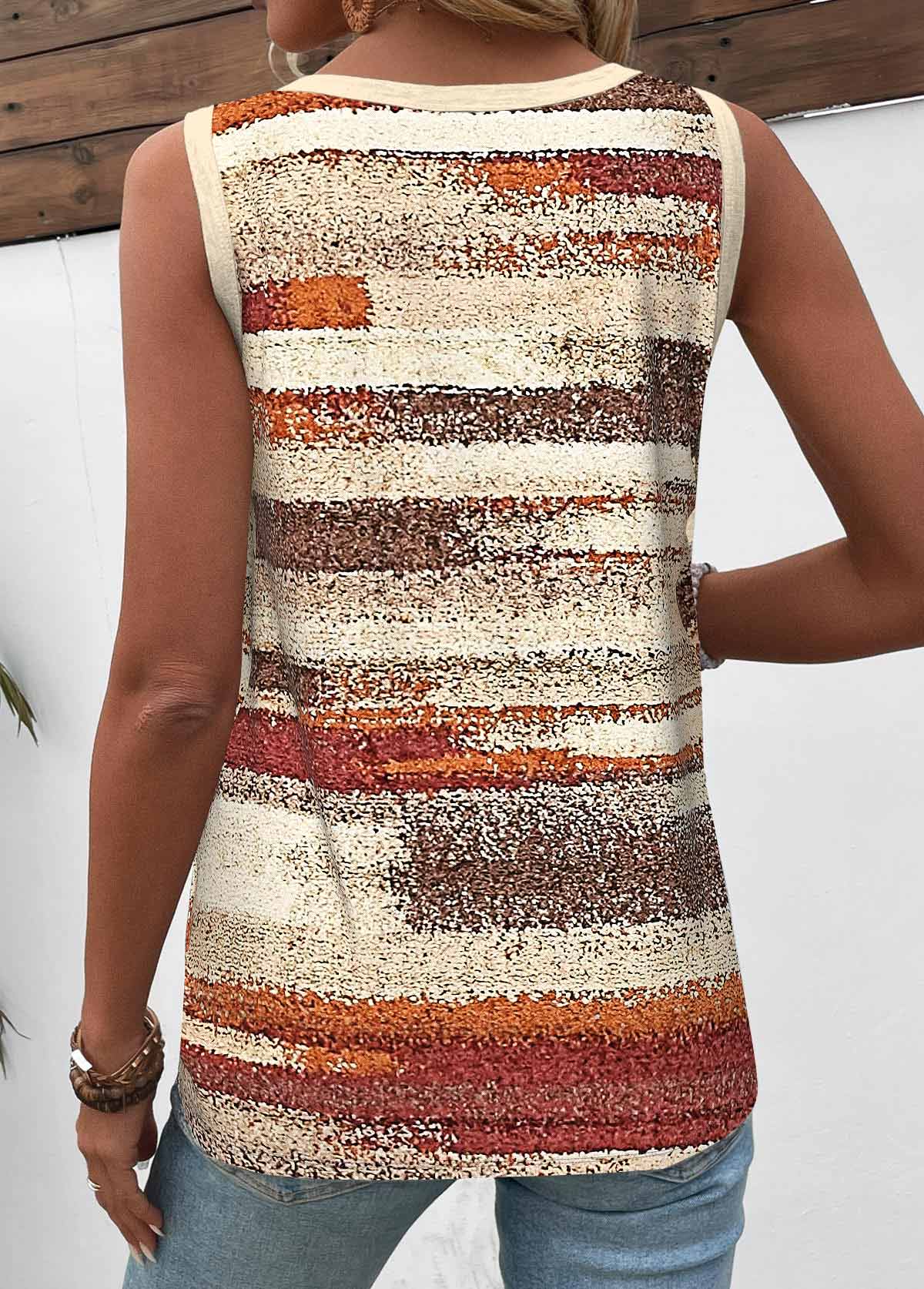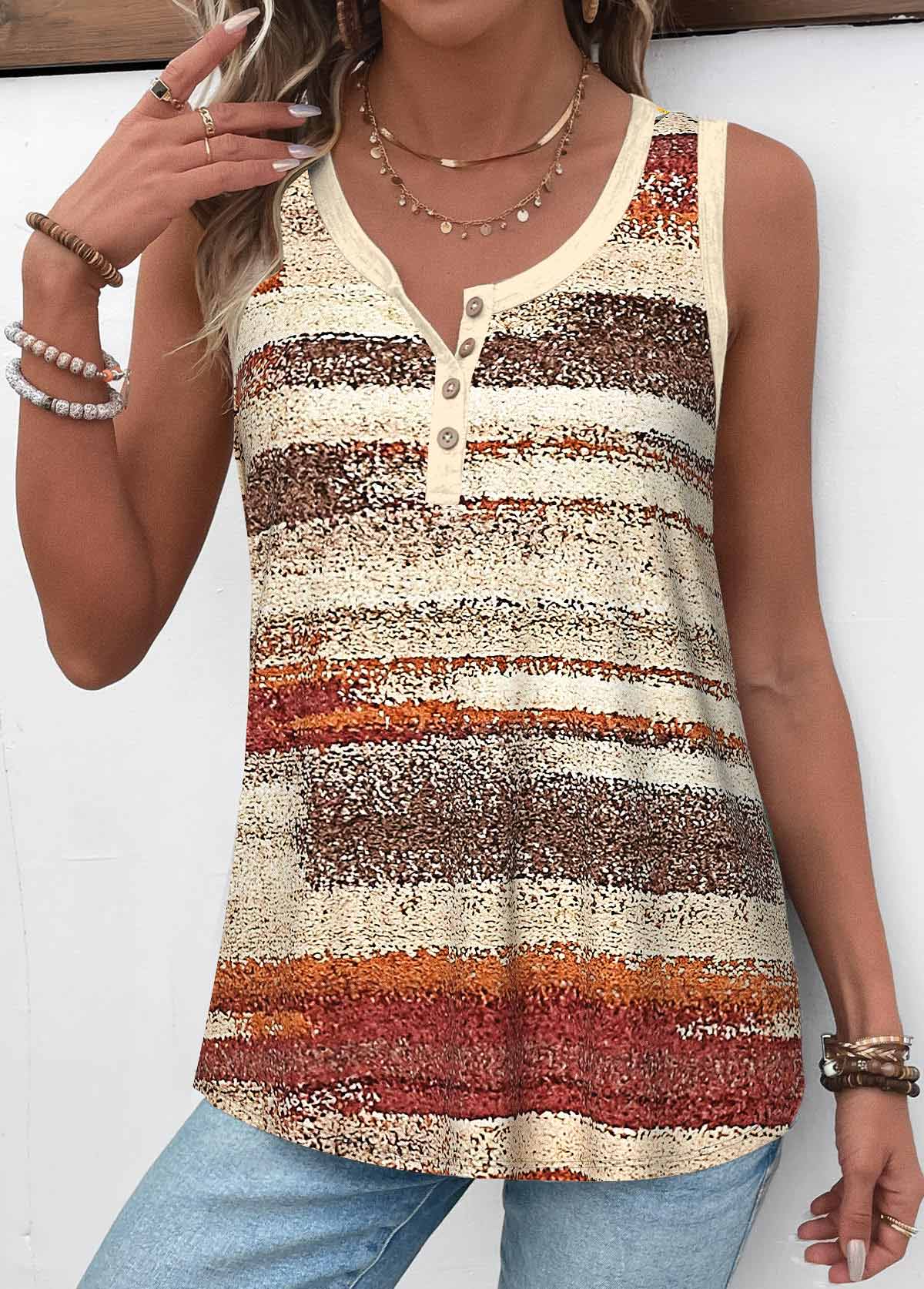 Light Yellow Button Striped Sleeveless Round Neck Tank Top