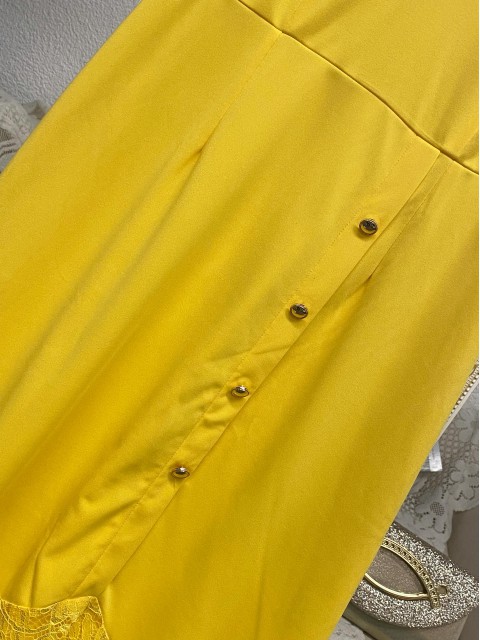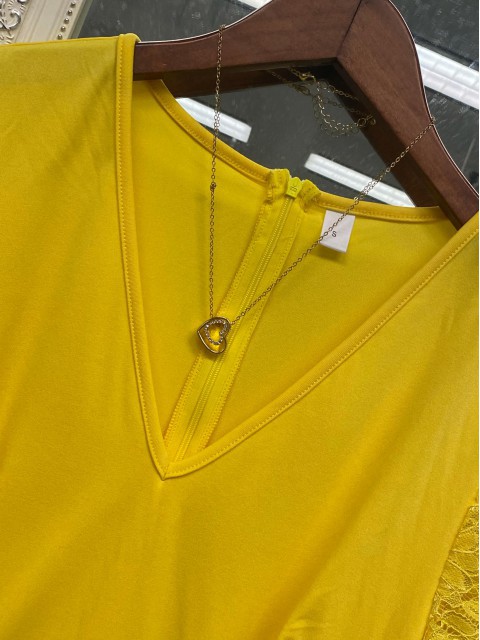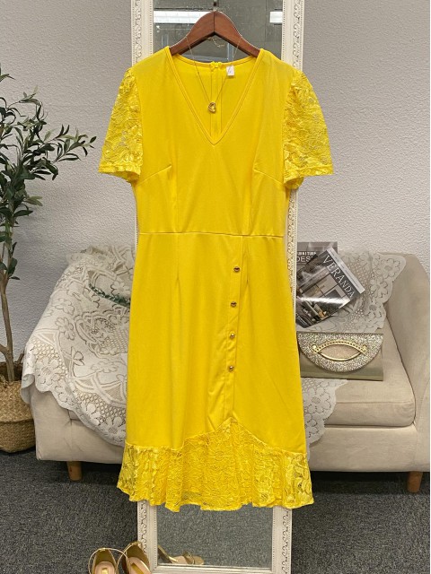 • Light Yellow Lace Short Sleeve V Neck Dress | thumb picture