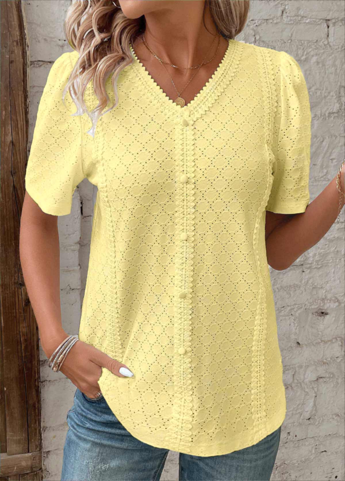 Navy Lace Short Sleeve Tie Collar T Shirt