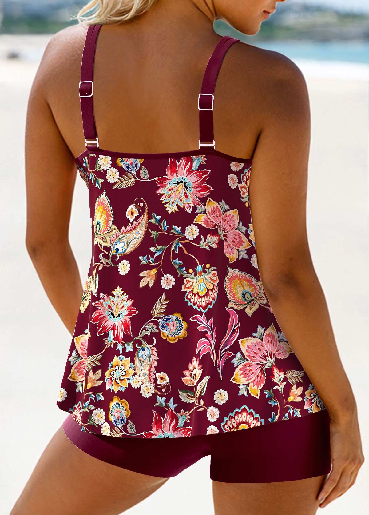 Tummy Coverage Mid Waisted Floral Print Tankini Set