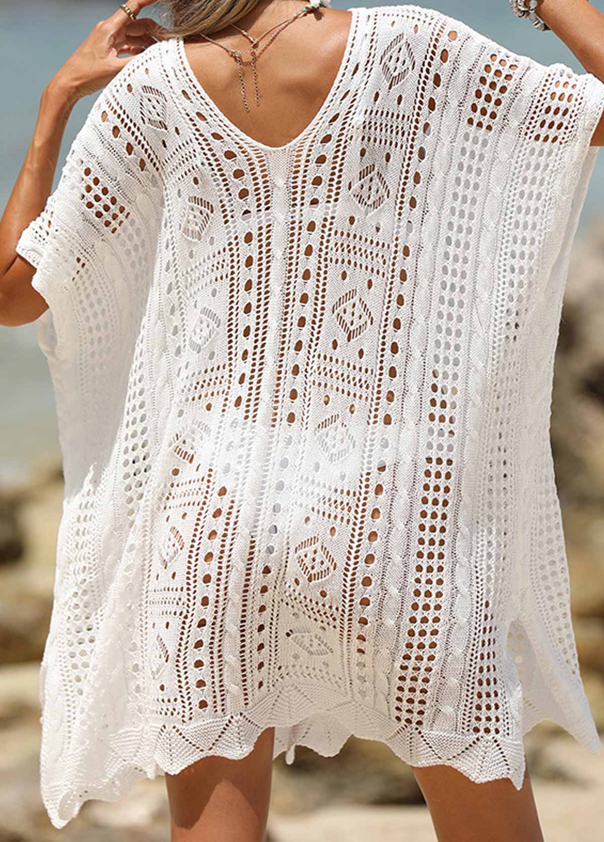 Hollow Out Short Sleeve White Cover Up