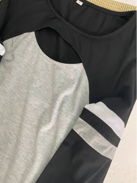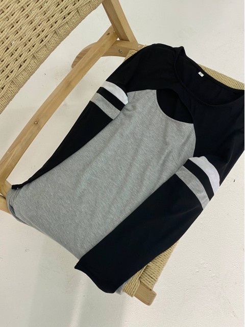 Grey Patchwork Geometric Print Long Sleeve T Shirt