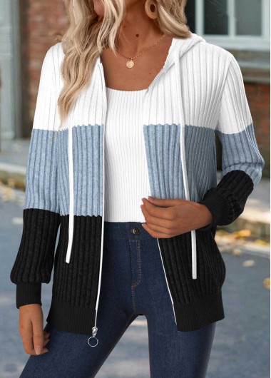 Black Zipper Striped Long Sleeve Turn Down Collar Sweatshirt