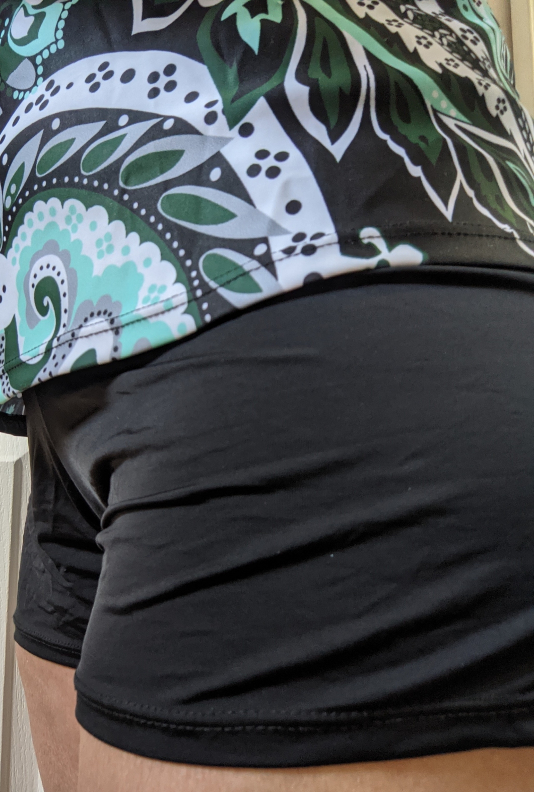 Tummy Coverage Tropical Plants Print Black Tankini Top