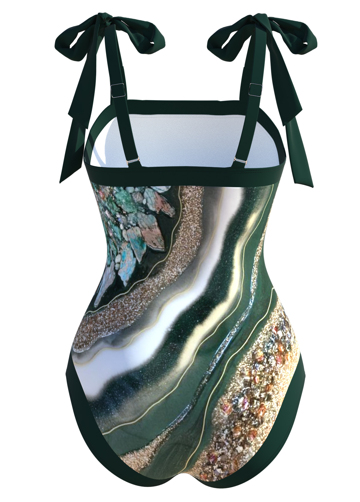 Jacquard Mint Green Square Neck One Piece Swimdress