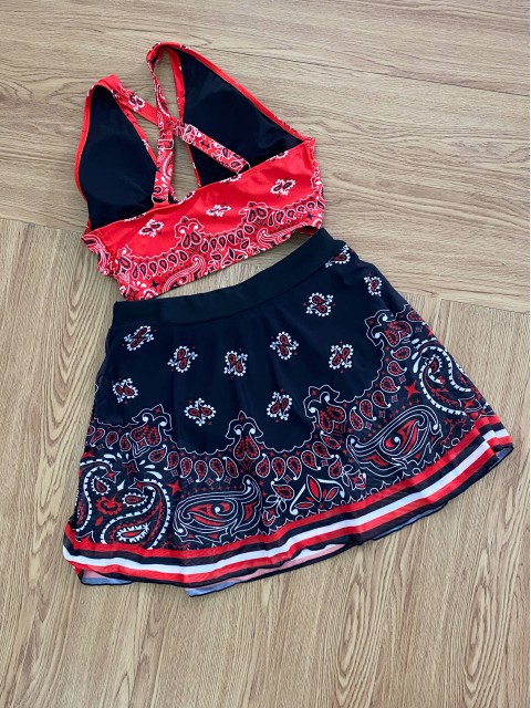 Random Floral Two-Piece One Piece Swimwear and Skirt