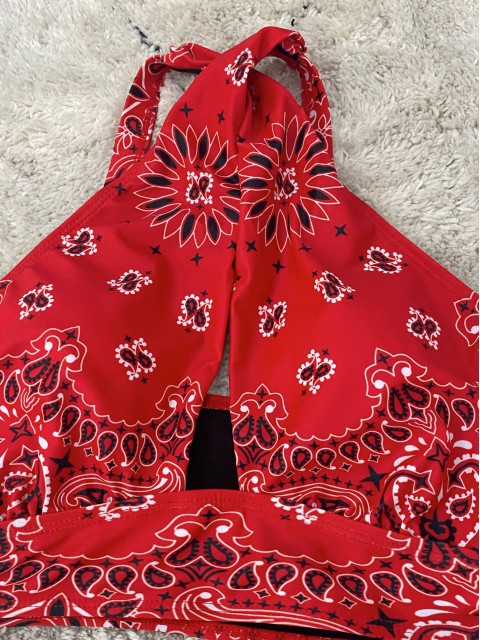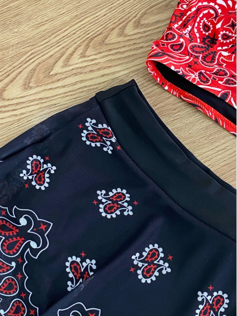Mid Waisted Paisley Print Light Coffee Bikini Set
