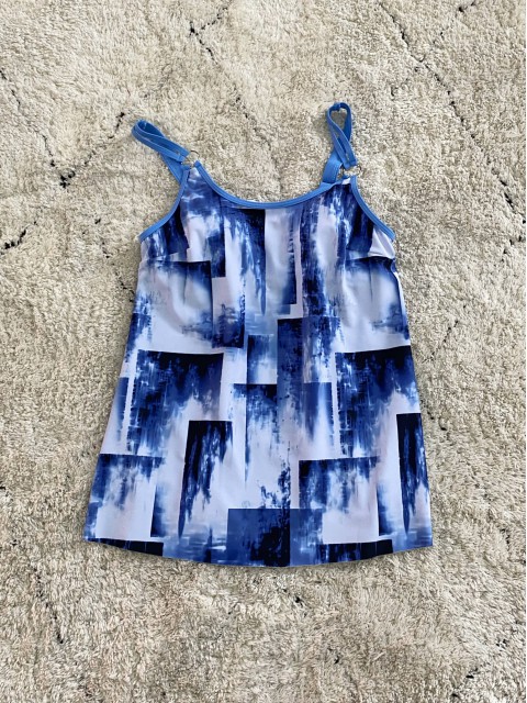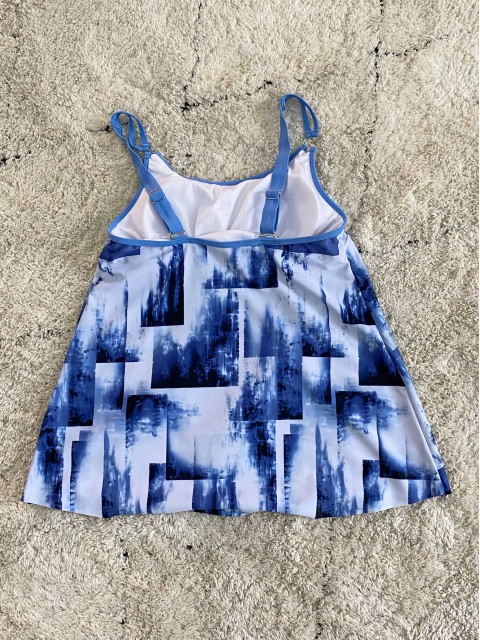 Patchwork Ombre Cyan Double Straps Tankini Top