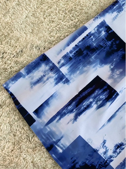 Mid Waisted Leaf Print Royal Blue Tankini Set