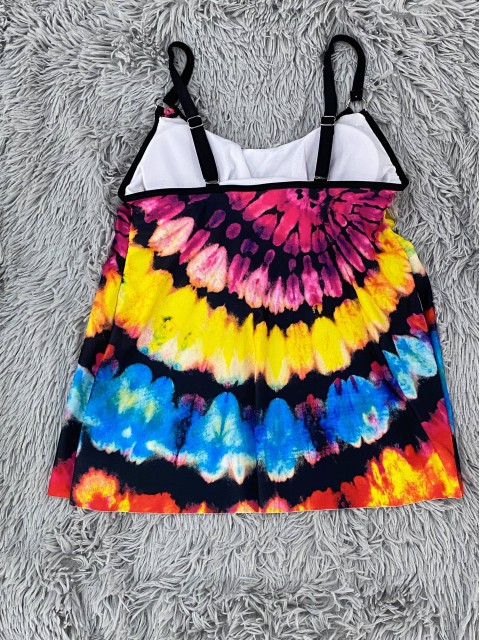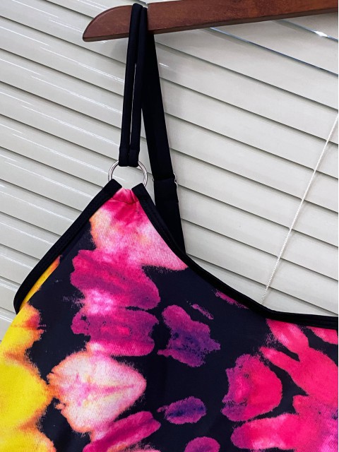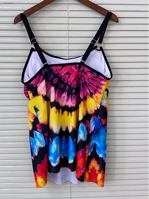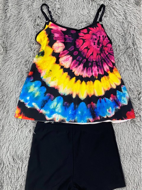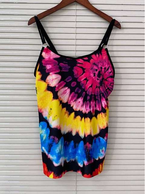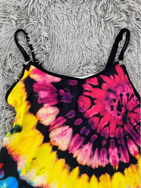 Tie Dye Print Black Tankini Top