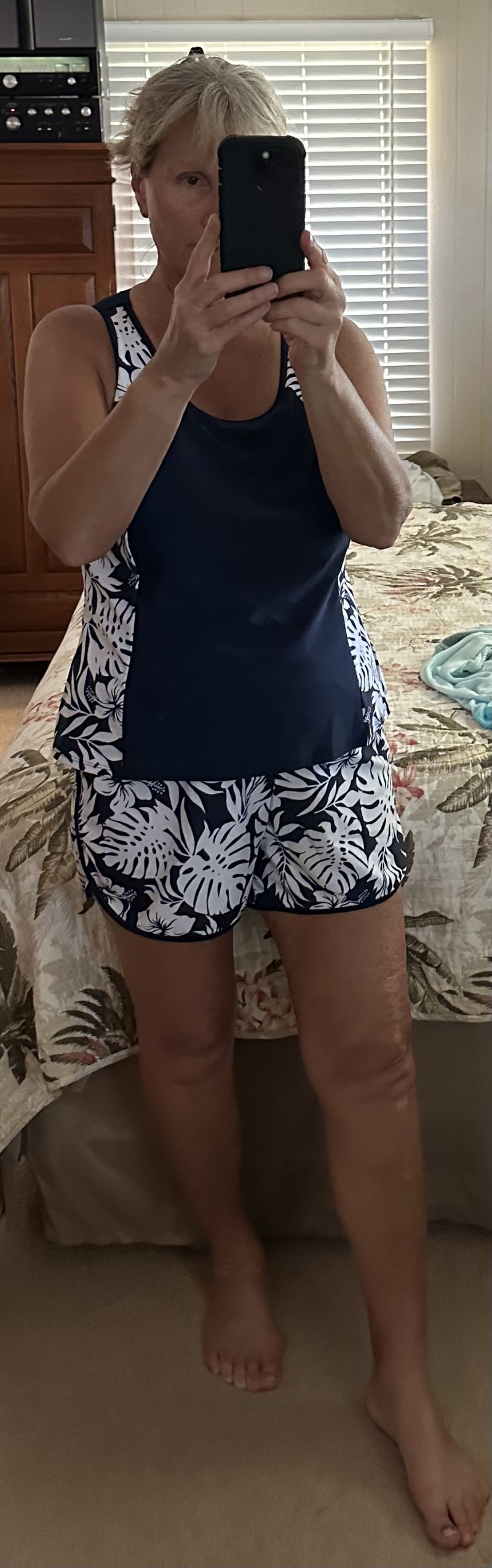Tummy Coverage Mid Waisted Plants Print Navy Tankini Set