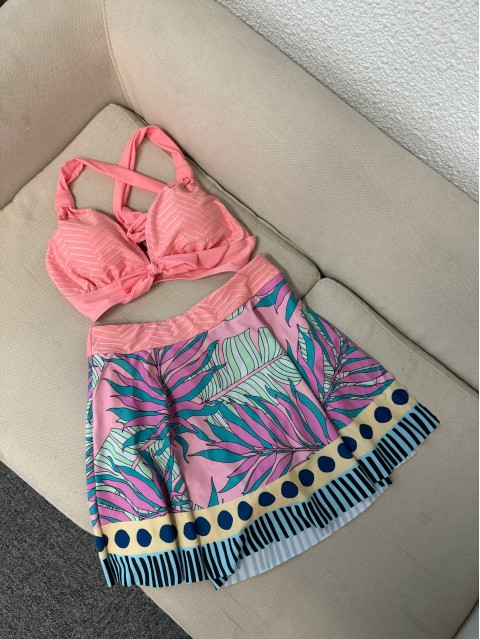 Random Floral Two-Piece One Piece Swimwear and Skirt