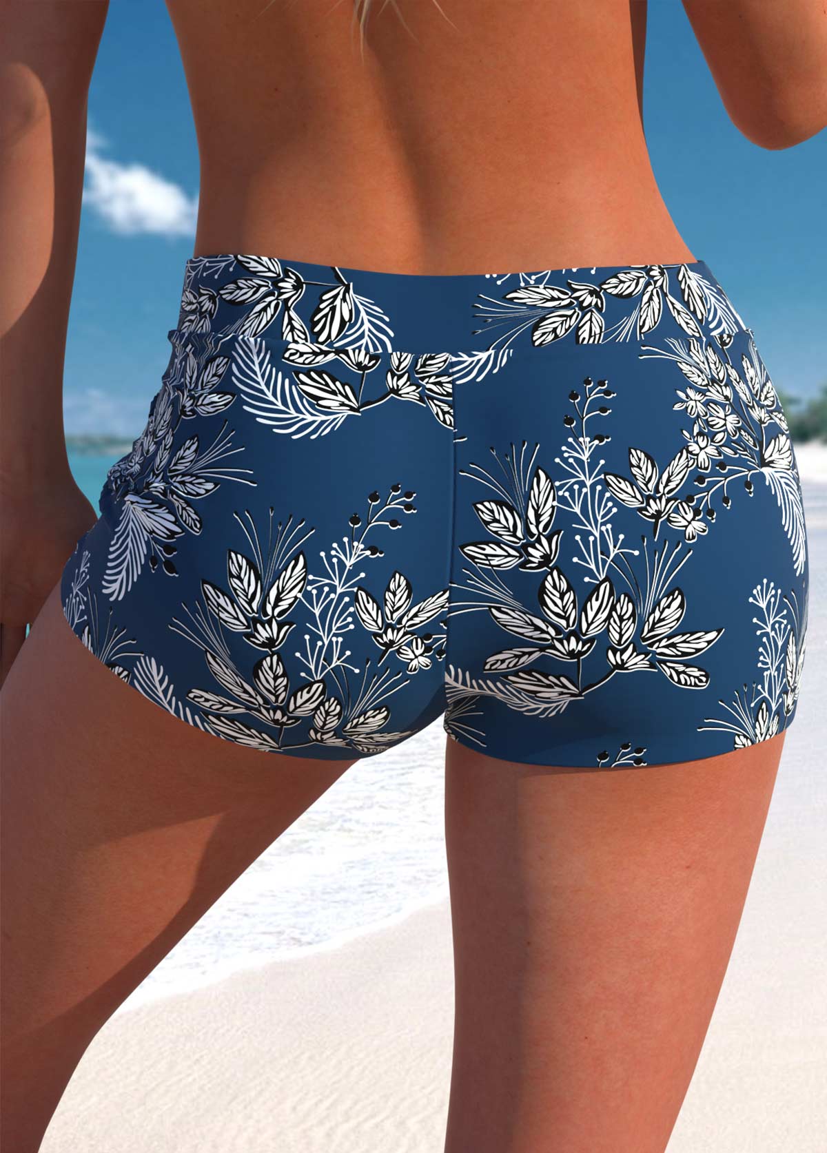 Three-piece Mid Waisted Tropical Plants Print Tankini Set