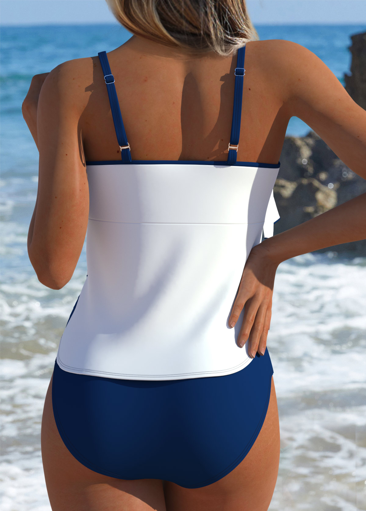 Navy Mid Waisted Two-piece Polka Dot Tankini Set