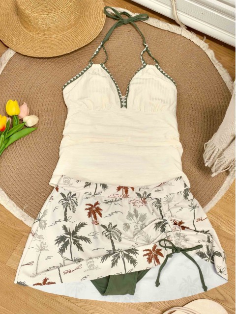 Home  /  Swimwear  /  Tankinis  /  Tankini Sets  /  Mid Waisted Tropical Plants Print Beige Tankini Set