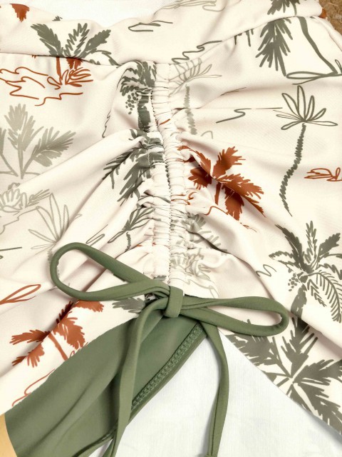 • Mid Waisted Tropical Plants Print Beige Tankini Set | thumb picture