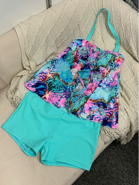 Home  /  Swimwear  /  Tankinis  /  Tankini Sets  /  Mid Waisted Tropical Plants Print Wine Red Tankini Set