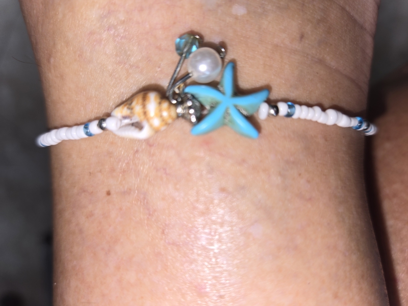• Mint Green Beaded Starfish Alloy Anklet | thumb picture