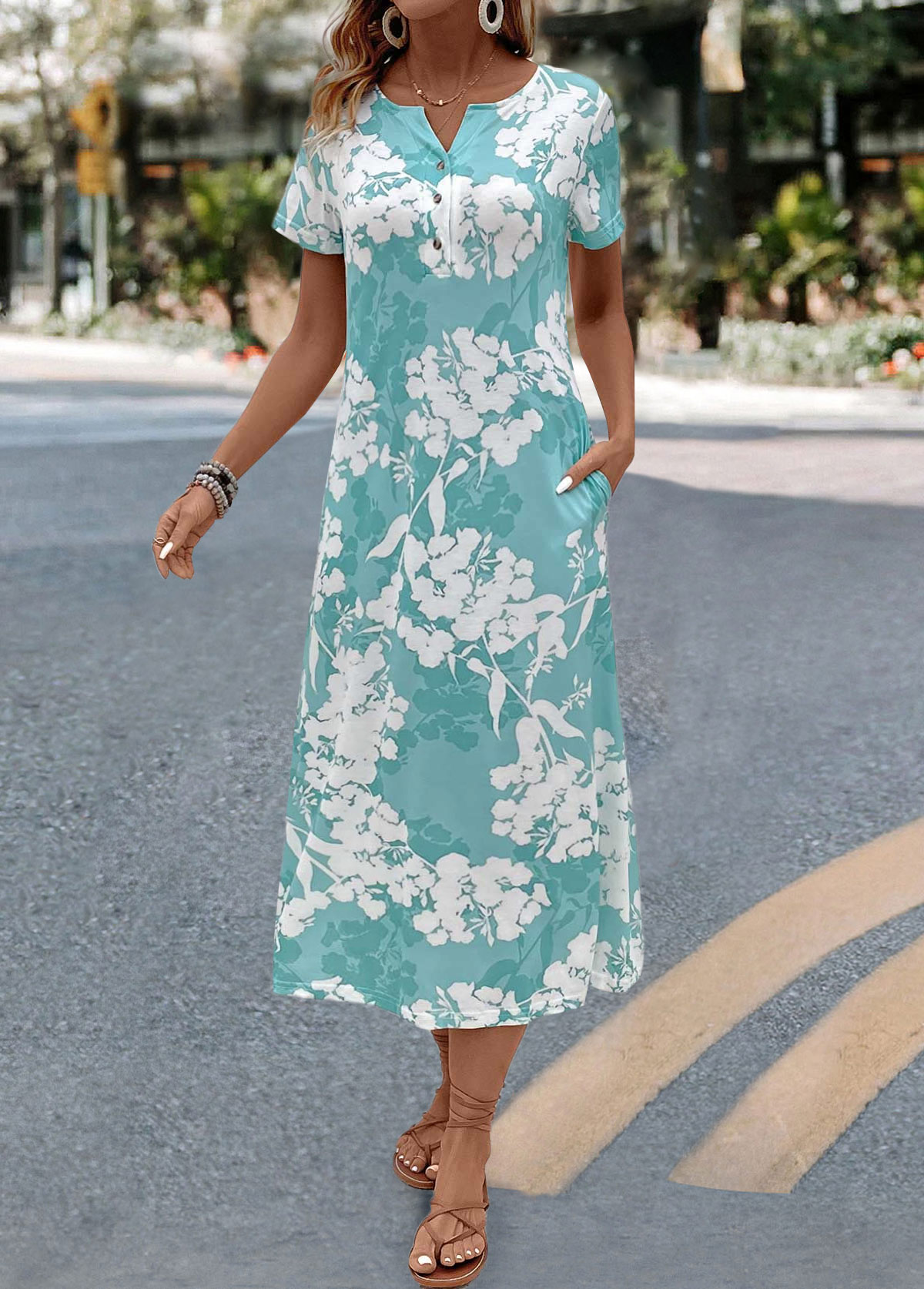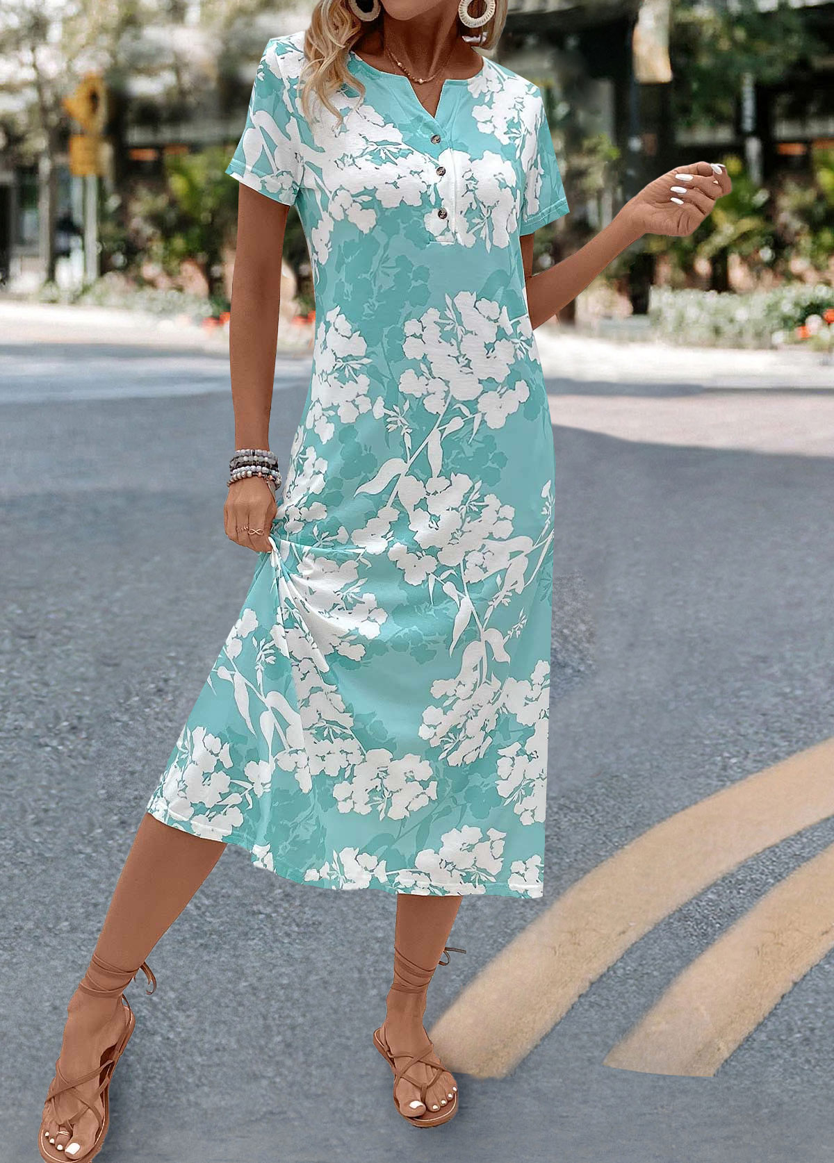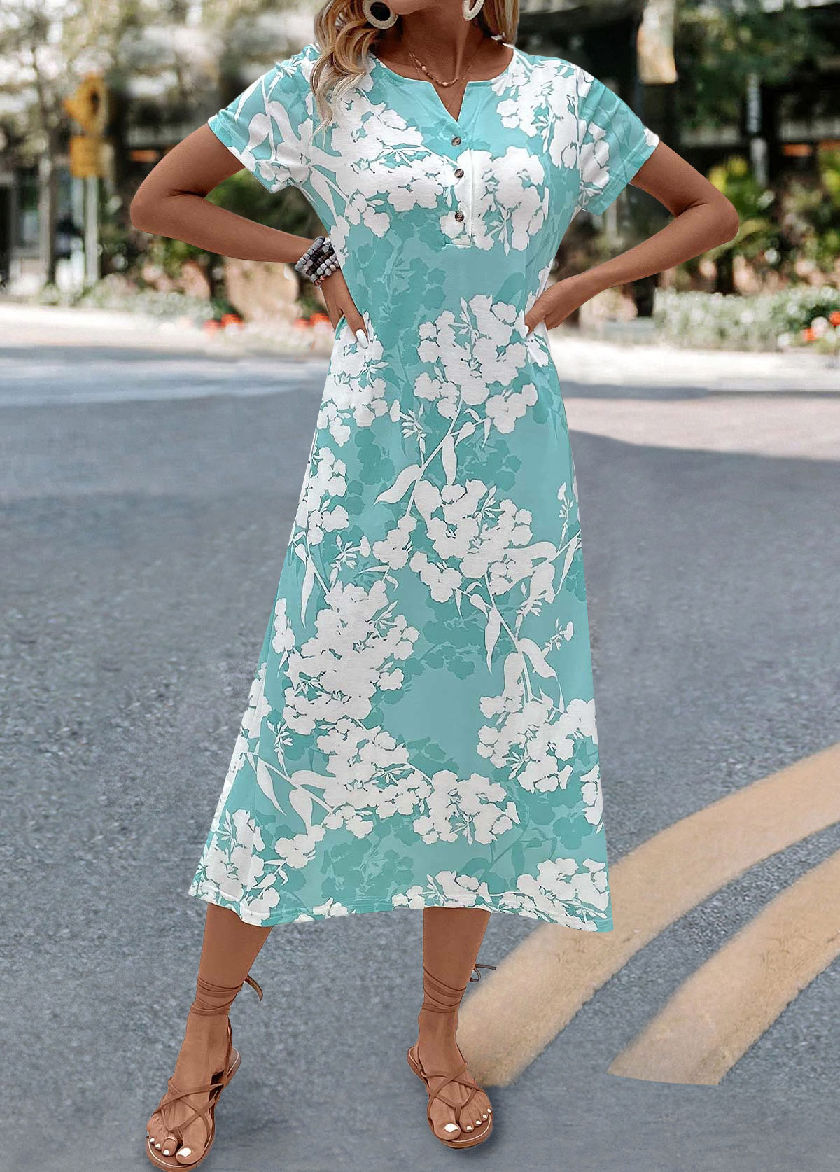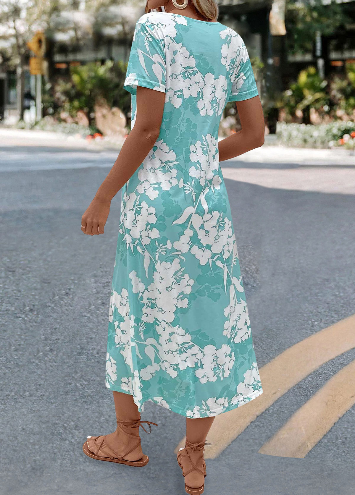 women's clothes / Dresses  /  Mint Green Floral Print A Line Short Sleeve Dress