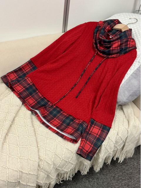 Navy Tummy Coverage Plaid Long Sleeve Hoodie