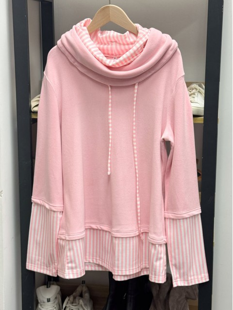 Multi Color Tummy Coverage Striped Long Sleeve Sweatshirt